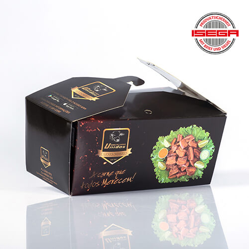 Nossa caixa para alimentos é fabricada com papel de alta qualidade, específico para contato seguro com alimentos, garantindo a proteção necessária.